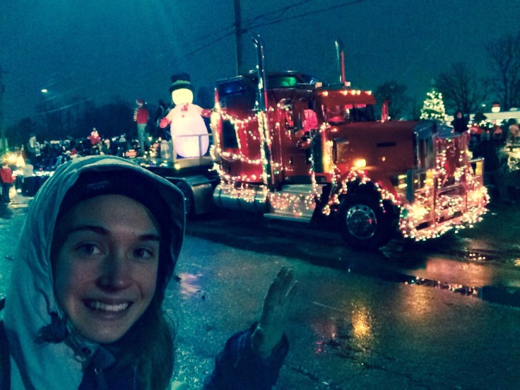 Totálně promočená a zmrzlá jsem po celém dni stráveném v dešti na ulicích New Glasgow dorazila na místo plné vánočních světýlek, elfovů, Santů, sobů, nazdobených dětiček, koled, rolniček, smíchu a velkých osvětlených náklaďáků, které už čekají na vánoční průvod!
