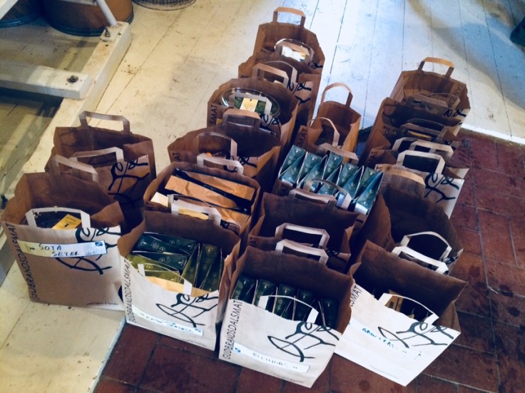 Odpoledne přichází plno objednávek z obchodů, a tak balíčkujem čaje, květiny a koření, lepíme štítky, etikujetem a nakonec vkladáme do papírových sáčku.