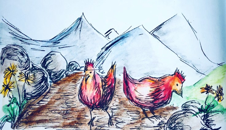 A moje vzpomínky… Sedím na vyvýšeném kameni nad úzoučkou pěšinkou, pozoruji zdrchané turisty a bláznivé běžce. Kochám se horskými výhledy a těmi ukrutnými, sněhem posypanými vrcholky, které jsou mi každým dnem výzvou. Baštím cookies, které jsou vlastně takové hnědé kulaté drahokamy s čokoládovými krystalky. U nohou mi cvrkají koníci a elektrické vedení bzuká nad hlavou.