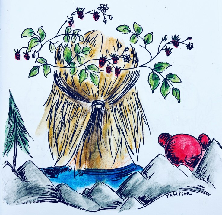 Vše se však zvrtne v tu chvíli, jakmile se cesta zanoří do malinového houští. V tu ránu mě sportovní disciplína opouští, tempo se značně zpomalilí a já klekám do do křoví na každém metru. Abych přece jen ten čas trochu ušetřila, tak do sebe maliny cpu po hrstích i se zelenýma stopečkama a včetně chudinek červíčků. No nic, hory volají, stejnak bych to tu nikdy celý nevyjedla. Chamtivost mi nedá. Děkuji lesu a beru si ještě na večer do krabičky. 🌞🗻🍓