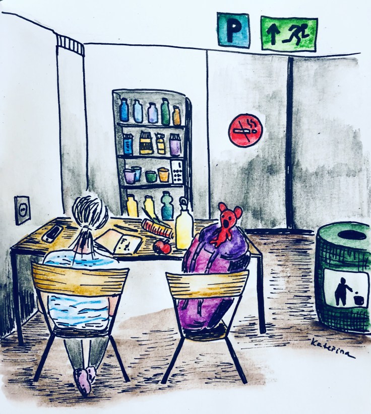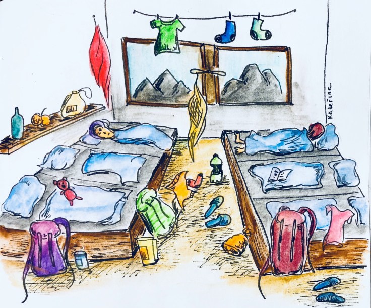 Schoulená na letištní podlaze, snažím se spát. Aby mi spaní nezatrhli schovávám se za odpadkovým košem. Teď jen doufám, že mě omylem nevysajou a nepřejedou tím autíčkovým mopem. Každýma blížícíma se krokama se děsím, že už si jdou pro mě. Podlaha tlačí, klimatizace hučí. Ve snech už mě čtyřikrát ohradli a autobus mi ujel. Aby toho nebylo málo, chce se mi už i čurat. Dlouho zadržuju…,přece teď v noci a s tím batohem, navíc z mé podlahové postýlky nepůjdu hledat záchody. Tak jo už musím. Batoh tu nechám, budu hned zpátky a odpaďák s Kukym ho pohlídaj. Rozespalá trtám prázným letištěm a doufám, že batoh se všema věcma na mě počká. Haha… zbytečné starosti. O batoh bylo dobře postaráno. Obestoupilo ho několik ozbrojených strážníku a ustaraně na něj koukaj. Zas měli strach, že tam mám snad bombu. Díky bohu, už ráno. Autobus nemeškám! 🚍👌🏻🌜