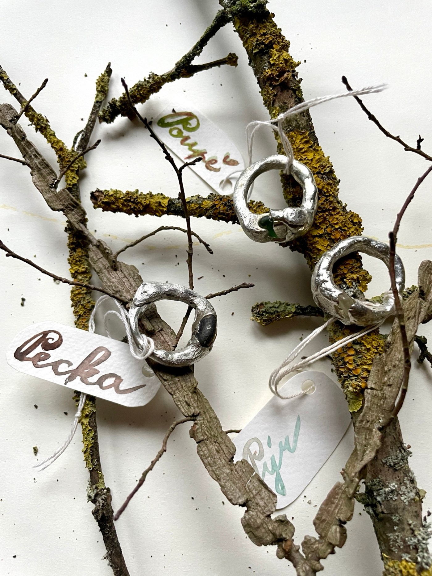 Kolekce cínových prstenů inspirovaná zimní krajinou zahalenou do nikdy nekončící mlhy.